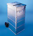 Transportabel in allen gängigen Aufzügen. Die Befüllung erfolgt über einen Schlitz im Deckel.