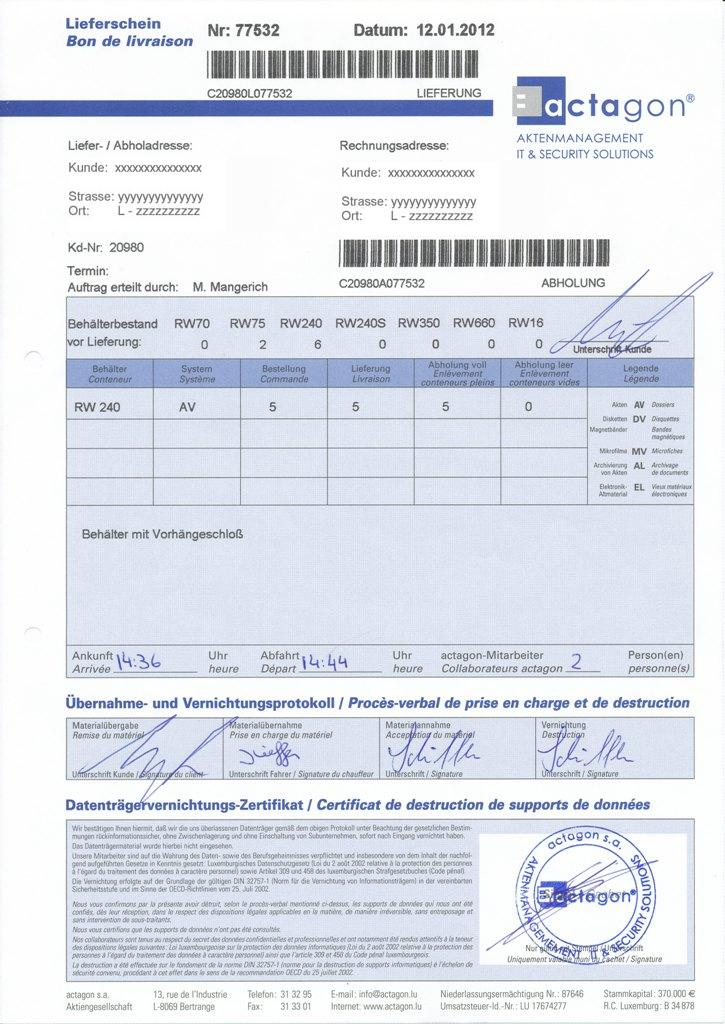 Dabei wird jeweils das Datum, die Uhrzeit und der verantwortliche Mitarbeiter erfaßt.