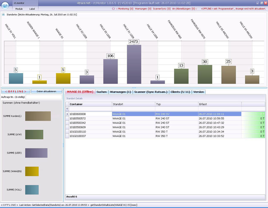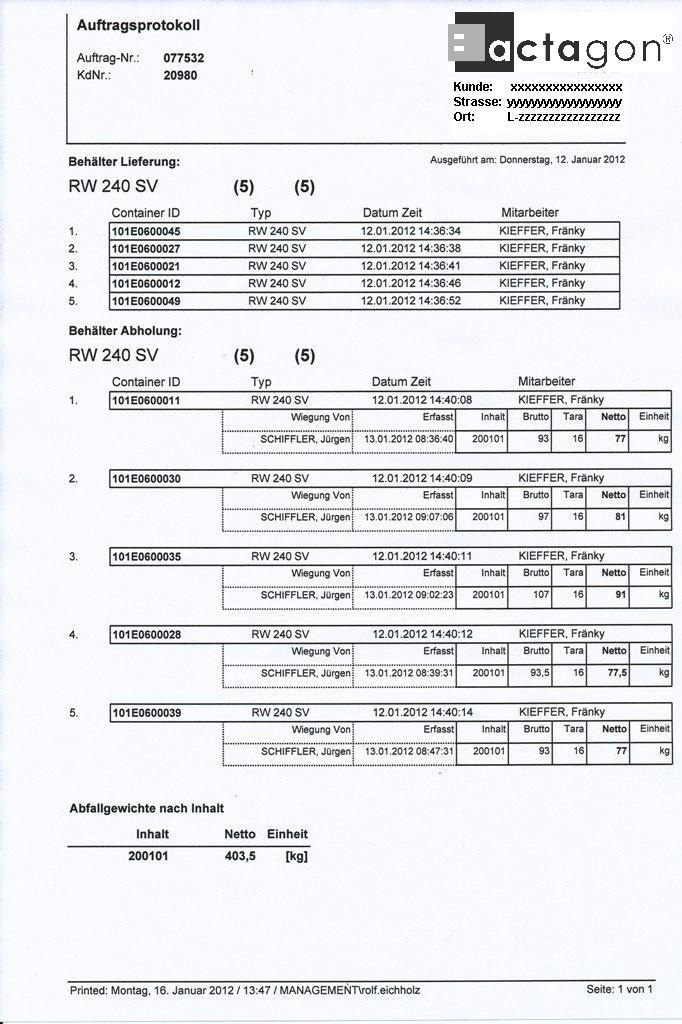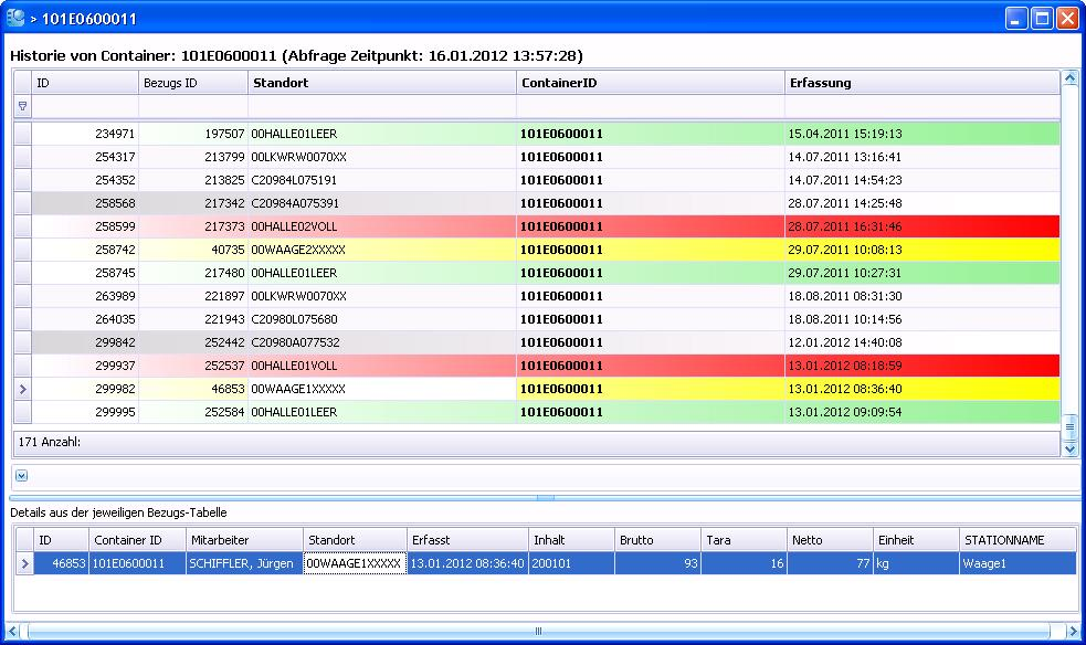 Durch die Erfassung der an die Behälter angebrachten Barcodes an sämtlichen Übergabestellen, kann jetzt der Weg und weitere Daten eines jeden Behälters erfaßt und ausgewertet werden.