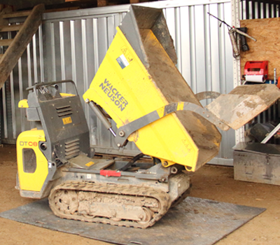 635kg leer, 800kg Zuladung, 80cm breit, Steigfähigkeit 36%, Muldeninhalt 334-387 Liter, Kippbar, mit Selbstladerschaufel