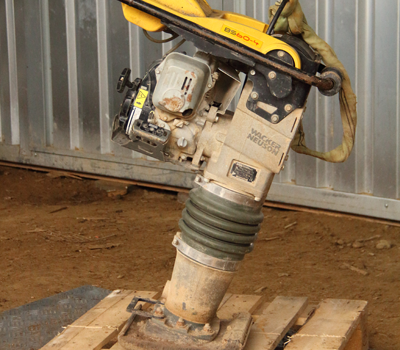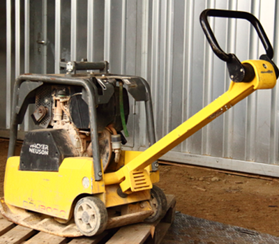 188kg, Arbeitsbreite 50cm, Schlagkraft 30KN. Zubehör: Gummimatte zum Abrütteln von Pflaster.